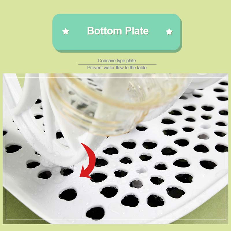 - Efficient Drying: With its specialized design, this rack promotes efficient air circulation, allowing bottles to dry quickly and thoroughly. The elevated platform and slotted channels keep bottles upright, facilitating proper drainage and preventing the accumulation of water while the detachable drip tray ensures no water spills on your kitchen counter.